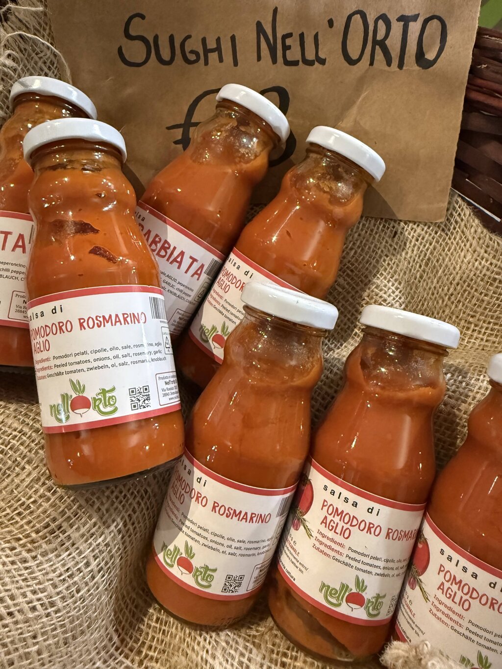 E tra i tanti prodotti è giusto sapere che ci sono anche le salse, le zuppe e le marmellate realizzate direttamente da Alessandro, il titolare del negozio Nell'Orto, anche per mezzo di attrezzature all'avanguardia che permettono di mantenere le proprietà organolettiche delle materie prime esaltando sapori ed aromi attraverso la cottura sottovuoto in tempi ridotti (una composta di frutta viene preparata in 10 minuti senza aggiunta di zuccheri ed additivi).